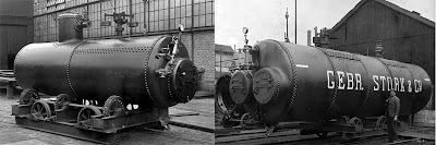 2. In plaats van een vuur onder de ketel te stoken, was er een U-vormige vuurgang die van de stookplaats door de ketel naar de schoorsteen liep. De stookplaats was naast de schoorsteen. Om het vuurtje te kunnen stoken werd er een kleine kolen- en sta-tender aangehangen.